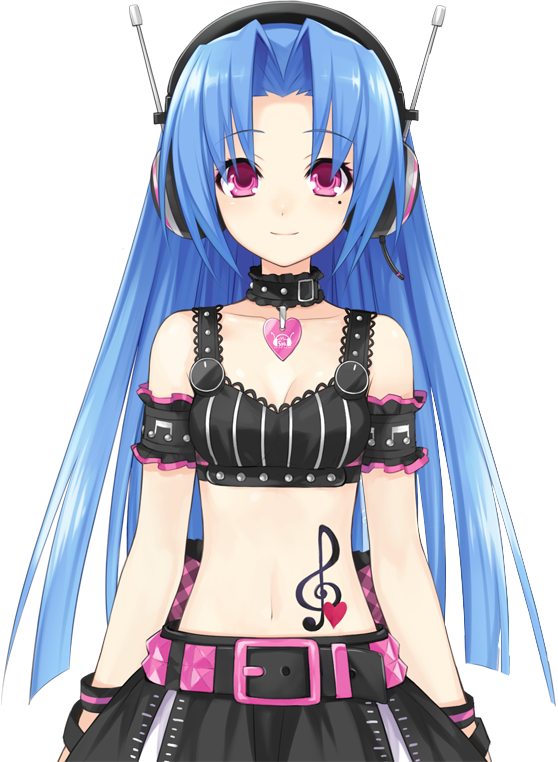 Despite her tendencies of shyness, she doesn't believe in any injustice against music and will not hesitate to speak her mind. She isn't at all greedy; when she must choose between her career and others, she'll gladly step in to help them. In fact, she loves to help others! Especially when it's someone of high status like the Goddesses, or if it involves her interest. Such as helping Noire with her voice acting and musical talent. She also grew very excited to think up costume designs for the two of them.