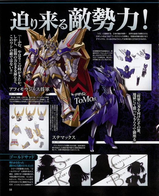 'Affimojas (アフィモウジャス Afimoujasu) is a robot who refers to himself as a general, and has a strong obsession with gold, The epitome of a money monger. He's been able to acquire tons of money using Steamax's gathered intel, all while situated on a flying battleship. He is the admin behind Gamindustri's biggest information site, "@GeneralSummarySite".