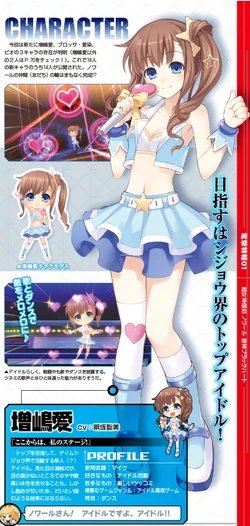 Ai Masujima (増島 愛 Masujima Ai) is a character that appears in Hyperdevotion Noire: Goddess Black Heart, as an idol aiming to become number one in all of Gamarket.
