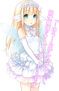 Bouquet is an NPC of 4 Goddesses Online and is equipped with artificial intelligence for conversation. She is a guardian spirit who protects the order of Alsgard. She will give adventurers advice in various locations. She fell in love with Vert at first sight, who also wanted a younger sister, and thus, has been locked-on as a younger sister candidate.