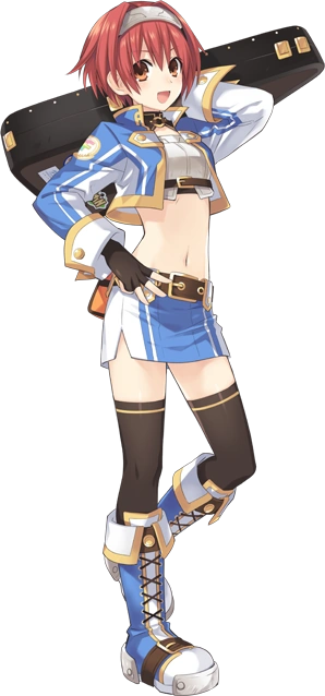 A well known warrior and musician, Falcom is so well known that even Blanc wanted her autograph. She's usually in good spirits and uses her Dragon Slayer (carried in a violin case) to fight. This sword was earned after getting permission from Histoire.