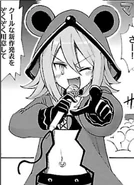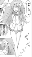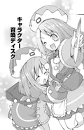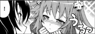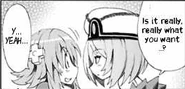 As this chapter comes to an end it shows the girls cheering, eating, playing games and other activities when Noire is seen with a full/drunk Neptune. Vert comes over and ask Blanc if she had fun as the female eats and suddenly the three girls begin to stare at a candle. As Noire comments on how nice it is, Neptune begins to get some odd thoughts...