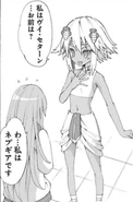 She assumes them to be training diligently when she is left in shock to see them in fact lazing around! Neptune was eating, Vert playing a game, and Blanc trying to write and read. Neptune goes to say since nobody is trying to destroy the world anymore they can take their time and enjoy all the sweets they want~, Blanc asks for them to quiet down while Vert ask permission to play a new beta she's been invited to join. Histoire gets very angry and ask them why they came to Celestia in the first place if they planned to just do as they pleased and she proceeds to kick them out, saying they need to do more training. The scene shifts back with Noire who calls them useless, she asks why they were there when Neptune adds they landed there. She also goes to explain what a Goddess really is: A freeloader is an adult.